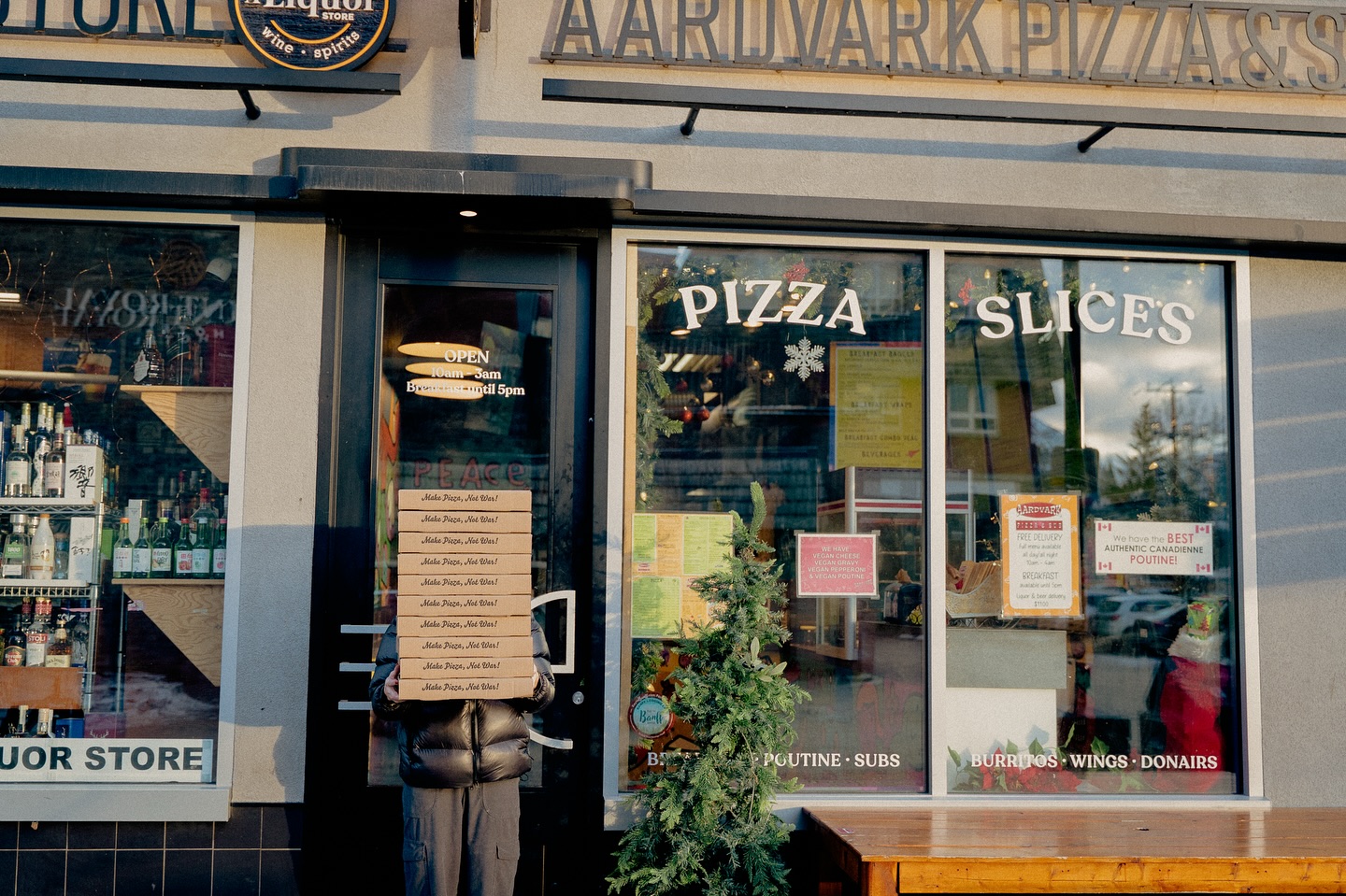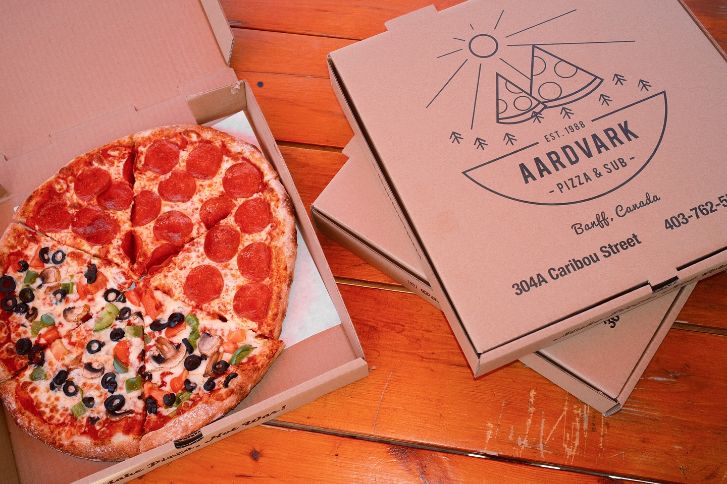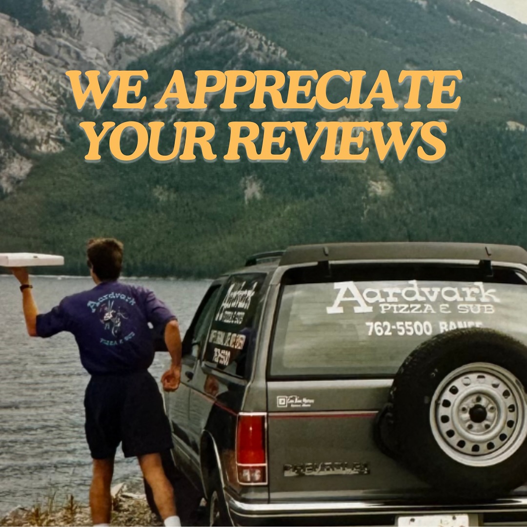 So, you want to hear our story? You got it. We’re Aardvark Pizza & Sub, owned and operated by Dave and Maria Smalley on Banff’s Caribou Street since 1990. If you’re not familiar with Aardvark, we’re a family-owned local pizza joint that’s known for great late-night food, some of the best pizza in Banff, and breakfast delivery for those slow-moving mornings. Whether you’re grabbing an aprés ski slice, swinging by after a night out in Banff, or ordering a meal at your home or hotel, we’re happy to serve you, and we know you’ll like what you see (and taste).